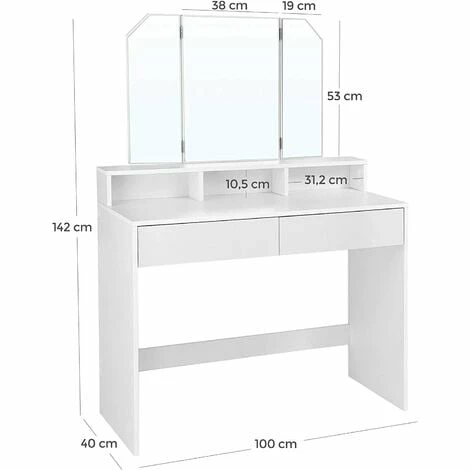 -Dimensions de la coiffeuse : 100 x 40 x 142 cm (L x l x H)