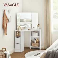 - Optimisez l’espace : Cette coiffeuse d’angle s’adapte parfaitement à tous les coins de votre chambre pour optimiser les espaces vides et vitaliser les coins