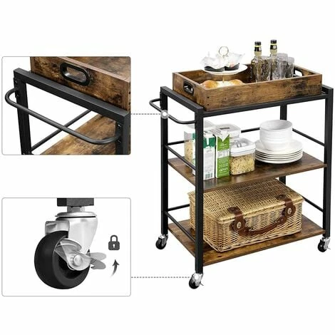 1. UN SERVICE 20/20 : Si vous aimez surprendre vos proches avec vos plats délicieux mais que votre plan de travail est souvent trop petit, ce chariot de cuisine avec un mélange de brun rustique et de noir élégant vous aide à renforcer votre talent culinaire