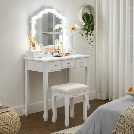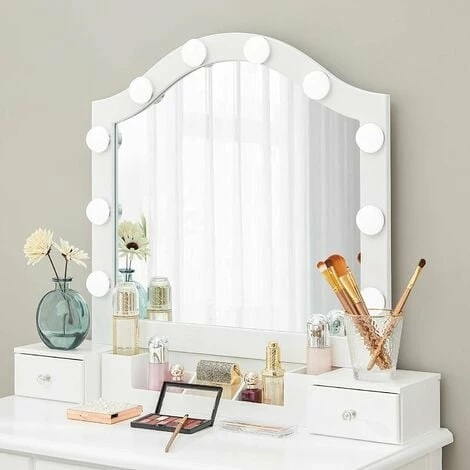 Soyez toujours parfait : Dites adieu aux défauts de maquillage qui ne sont pas visibles dans l’obscurité mais qui se remarquent facilement lorsque vous sortez. 10 ampoules à intensité variable entourant le miroir éclairent votre coiffeuse pour un maquillage parfait.