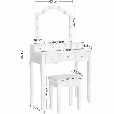 -Dimensions de la coiffeuse : 80 x 40 x 139 cm (L x l x H)