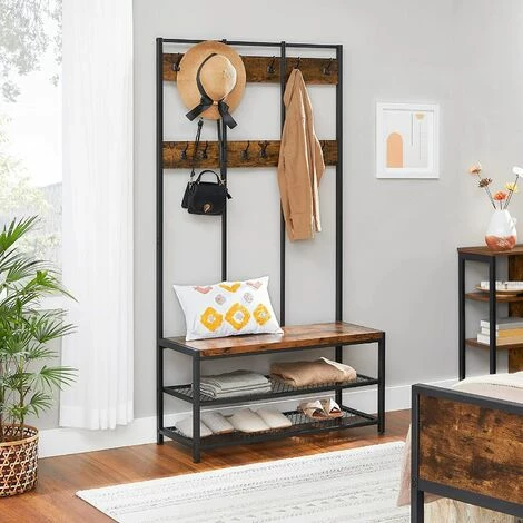-C’est un vestiaire multifonctionnel avec un banc (épaisseur de la tablette 30 mm), 2 étagères en treillis pour ranger vos chaussures et 12 crochets pour suspendre vos vêtements.