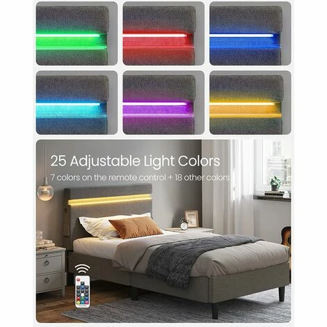 - Éclairage LED : La tête de lit est équipée d’un éclairage LED en 25 couleurs et 10 modèles de clignotement, la luminosité est réglable sur 6 niveaux. Vous pouvez régler la lumière à l’aide de la télécommande ou de l’interrupteur