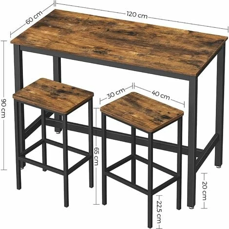 3.Configuration parfaite : Les deux tabourets de bar de 40 x 30 x 65 cm s’intègrent parfaitement sous la table, permettant un gain de place important, même si vous ajoutez encore 2 chaises supplémentaires