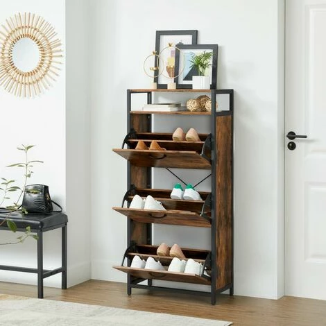 2.Plus d’espace : Ouvrez facilement les 3 abattants avec des poignées confortables, chacun a un séparateur. Il y a assez de place pour 15 à 18 paires de chaussures. D’une grande capacité, il prend peu d’espace au sol tout en exploitant au mieux la hauteur