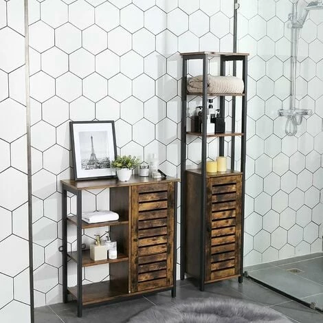 C’est un mélange artistique de cadre en fer noir et de tablettes en bois composite de style rustique. La porte style volet suscite la curiosité pour ce qui se trouve derrière, apporte également une touche très innovante.