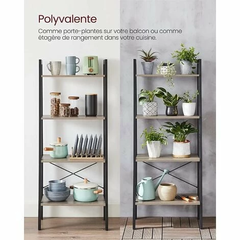 3.Laissez votre imagination s’enflammer : Posez ce que vous voulez sur cette étagère échelle à 4 niveaux comme des pots de fleurs, des livres, des œuvres d’art ou des cadres photo