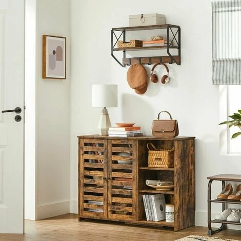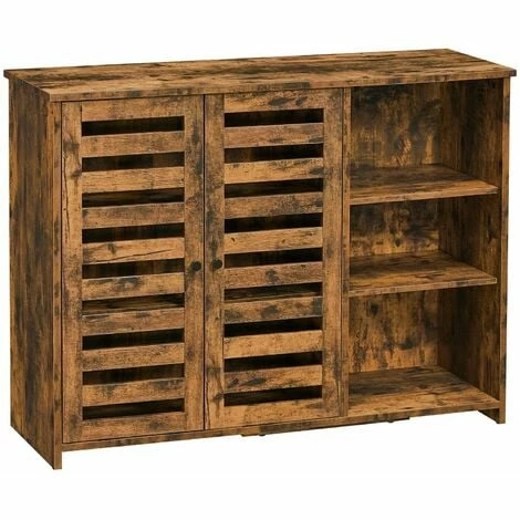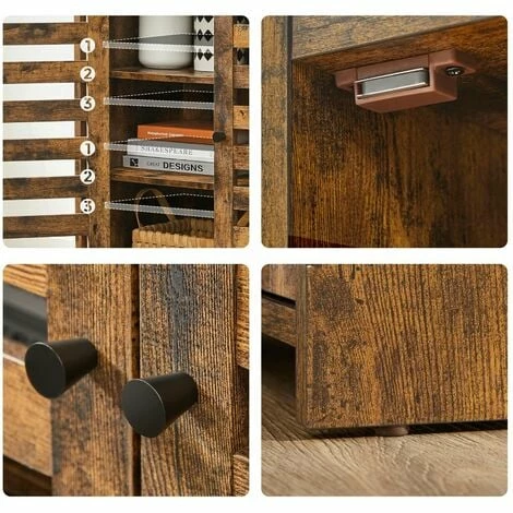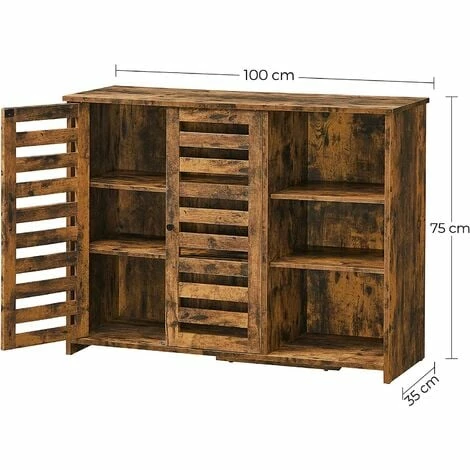5.Ce que vous obtenez : Une armoire de rangement rustique de 100 x 35 x 75 cm avec 3 compartiments ouverts et 1 placard à portes persiennes qui vous offre de l’espace de rangement ouvert et fermé, tout en ajoutant du peps dans votre maison
