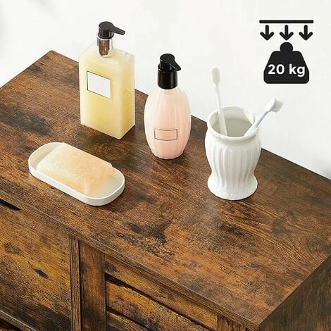 - Meuble ou décoration : Qui a dit qu’un meuble pratique ne pouvait pas être joli ? Cette armoire ne se contente pas d’avoir 3 tiroirs et 3 compartiments derrière la porte, elle est aussi un point fort dans toute salle de bains grâce à son charme rustique