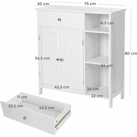 – 1 tiroir, 2 portes et 3 compartiments offrent de quoi ranger vos articles de différentes tailles