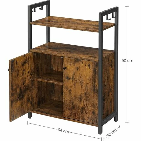 5.Ce que vous obtenez : Un meuble de rangement VASAGLE, avec un dessus, un compartiment ouvert et une étagère réglable à l’intérieur. Grâce aux pieds réglables et au cadre en acier, cette armoire est stable