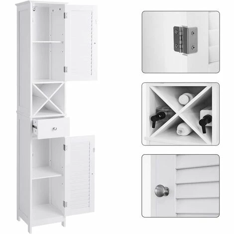 - À VOTRE HAUTEUR : Grâce à sa structure compacte et haute, ce placard se glisse facilement dans votre salle de bain. Avec son design simple et élégant, il fera également bonne figure dans votre entrée, votre salon ou sur votre balcon