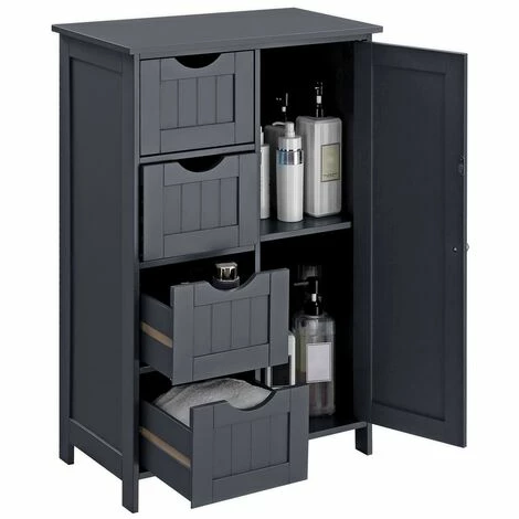 Doté de 4 tiroirs profonds et d’un placard, ce meuble de salle de bain possède une grande capacité de rangement pour vos serviettes, votre papier toilette et vos shampoings. Vous ne vous plaindrez plus d’avoir une salle de bain en désordre. En plus, une planche réglable sur 3 hauteurs vous permet d’optimiser l’espace en fonction des objets de différentes tailles.