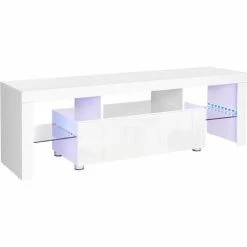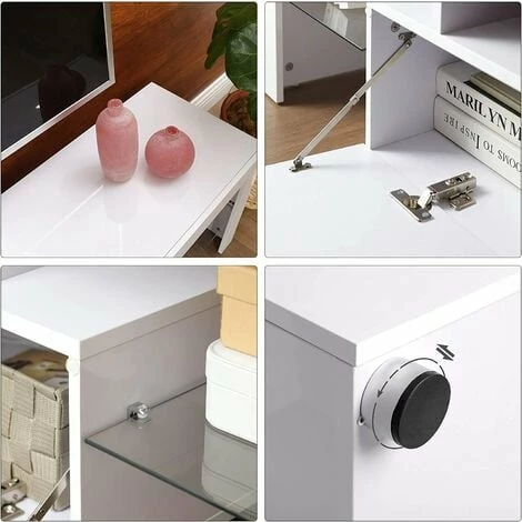 2.BANDES LUMINIEUSES À LED : Mettez votre téléviseur en lumière avec la surface blanche brillante de ce meuble TV et donnez une touche de modernité à votre coin TV. Collez les deux bandes lumineuses fournies n’importe où sur le panneau du téléviseur et laissez-le briller dans des couleurs vives néon