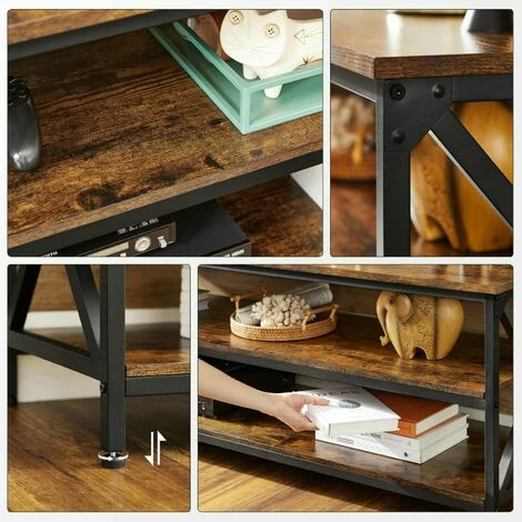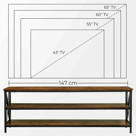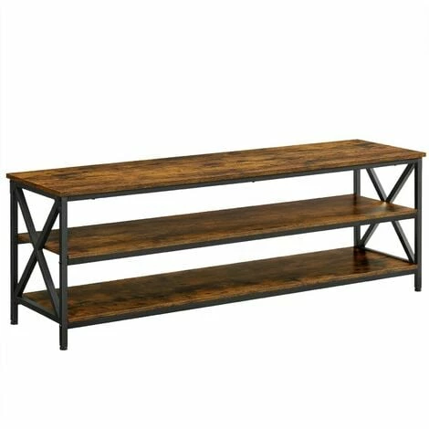 1.Le style campagnard est là : Vous n’avez pas besoin de vivre à la campagne pour réaliser votre rêve de ferme. Avec ses 3 planches marron rustiques renforcées par des cadres noirs en X, ce meuble TV apporte une atmosphère apaisante pour vos soirées télé