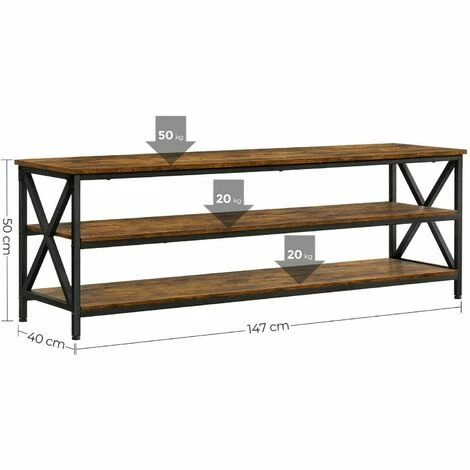3.Se démarque ? Par sa solidité ! Son cadre en acier en X et ses barres carrés s’allient à ses panneaux d’aggloméré pour créer une structure solide. Le dessus supporte jusqu’à 50 kg et chaque étagère en bas supporte jusqu’à 20 kg
