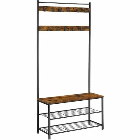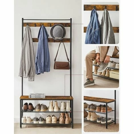 - [Tout ce dont vous avez besoin] Quand vous rentrez à la maison en fin de journée, accrochez votre manteau, chapeau et foulard sur les 9 crochets doubles, asseyez-vous sur le banc pour enlever vos chaussures et posez-les sur les étagères métalliques
