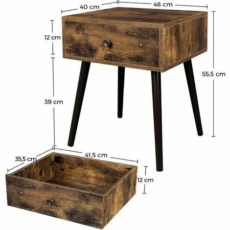 Bien que votre espace privé soit à l’abri des regards indiscrets, votre chambre ne doit pas être fade. Des panneaux marron rustiques et des pieds inclinés se complètent dans cette table de nuit pour apporter un charme particulier à vôtre intérieur.